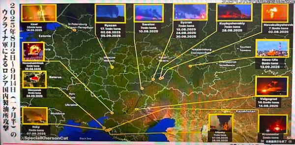 | 今朝のYouTubeによると、ウクライナはロシア バシコルトスタン共和国にあるノヴォ・ウフィル製油所をドローンで爆撃した。この製油所は700万トン/年 製油能力を有し、ウクライナから1500km離れた場所にある。この爆撃により、ロシアは年間製油能力の50%を喪失したと言われる。 ガソリン、軽油が半分になれば、戦場の武器の移動や兵站が稼働できなくなり、国民の自動車の移動が大きく制限され、大きく生活環境が阻害される。さらに10%ほど削減する計画があり60%削減を狙っている。ロシアは石油精製所の防衛システムが、ドローン攻撃に対しうまく機能していないようだ。 さらに新しい情報では、サンクトぺテルブルグ製油所や化学工場や鉄道などが次々と破壊されている。いよいよ、大きな戦況の転換点に差し掛かって来た。 がんばれ!ウクライナ! |